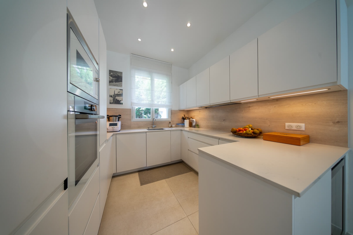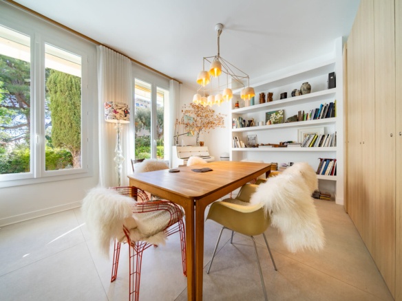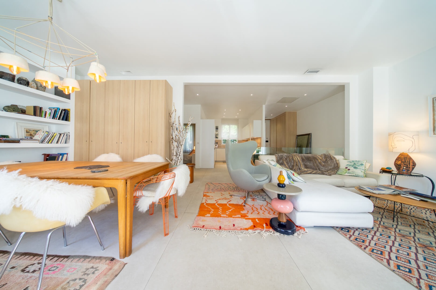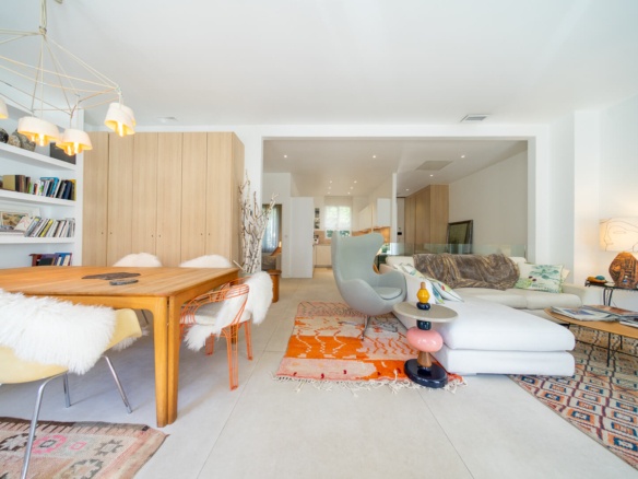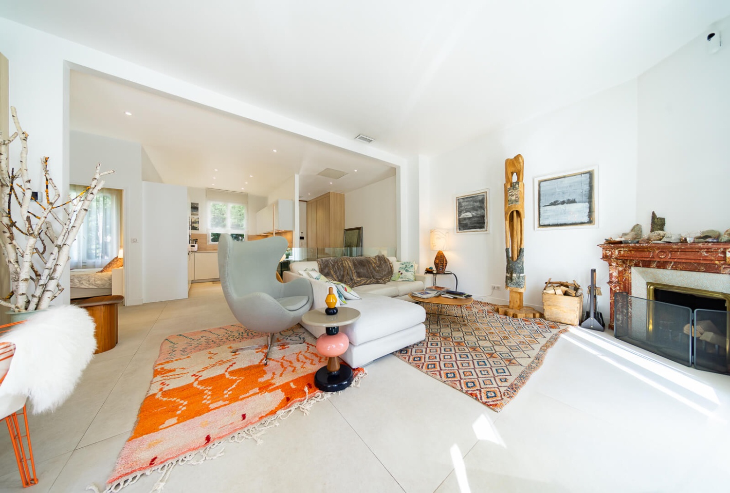 La villa se déploie sur deux niveaux avec, au rez-de-chaussée, un double séjour baigné de lumière ouvert sur une terrasse ensoleillée, ainsi qu’une cuisine américaine entièrement équipée. L’espace nuit propose trois chambre, dont une master de 29 m2 et une chambre en suite.