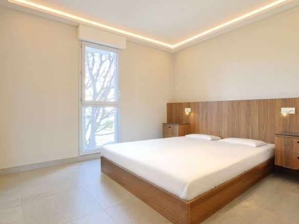 Une chambre confortable avec placards