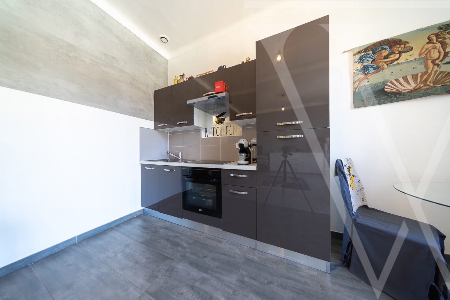 Il est agencé de la manière suivante : séjour exposé EST avec cuisine américaine, salle de douche, wc séparé, une chambre.